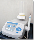 数種類の先端チップを使用し、歯の形状にあわせ慎重にエナメル質を傷つけないように歯の表側だけでなく、裏側も処置します。
